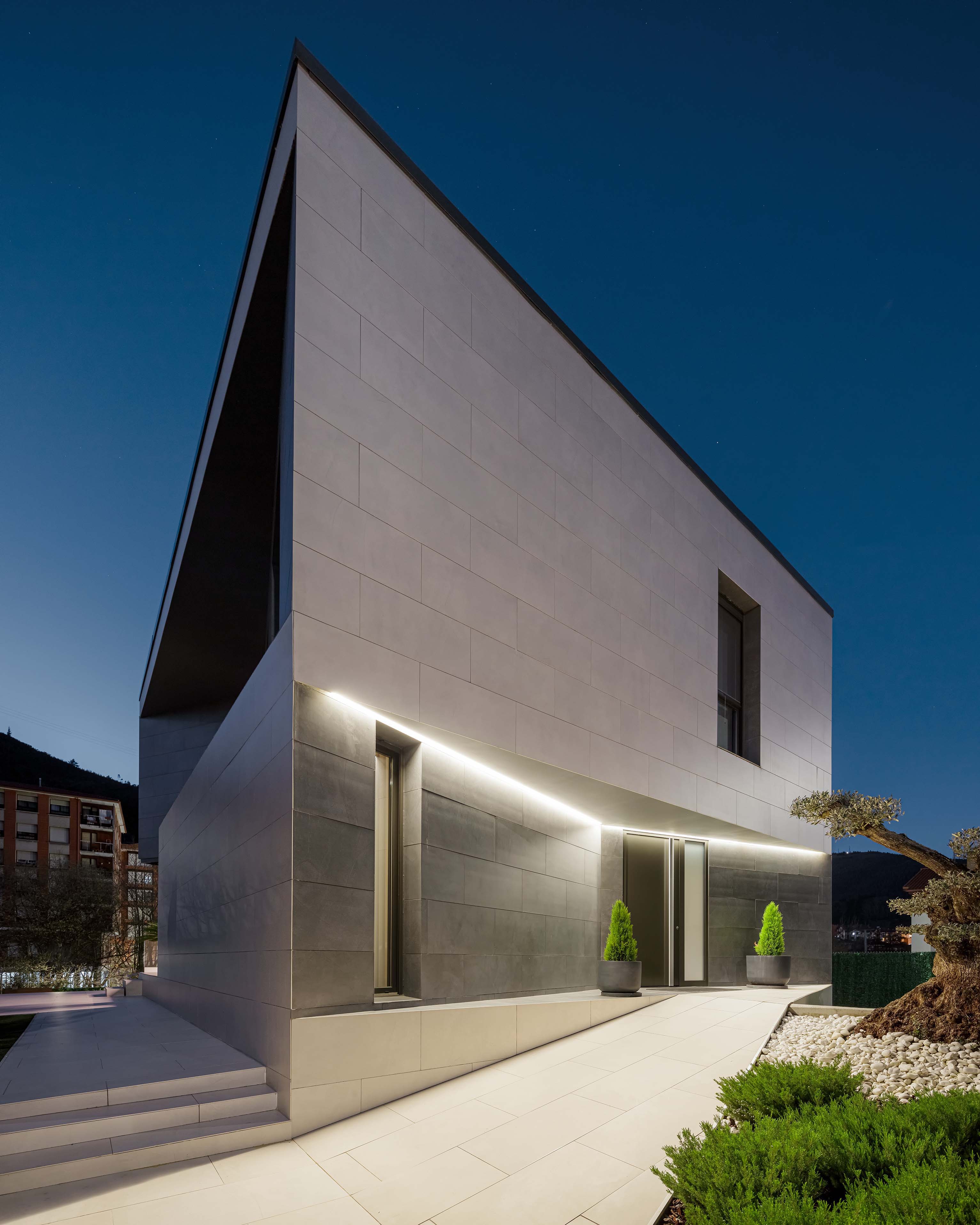 Despite its lot limitations, it still has a great cubic volume that juts out robustly next to the tributary of the Nervión River. Through a studied sequence of chiselled triangulations, this home responds to its residents’ lifestyle needs by offering comfortable terraces, interior views, and controlled privacy.