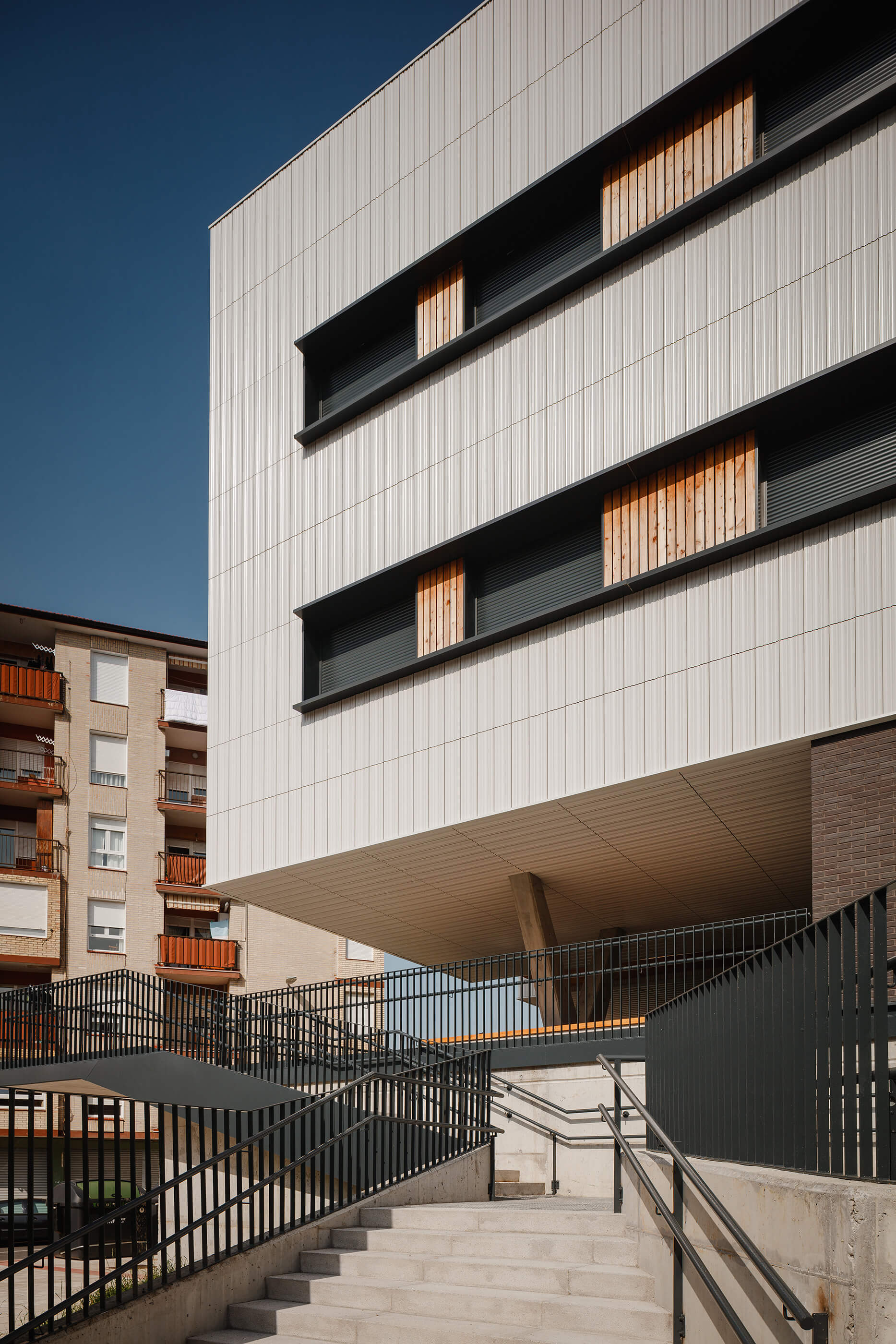 Located on a complex site intricately linked to an existing building, the expansion is divided into two longitudinal volumes that converge at its core, a central common space featuring an open staircase. From this hub, two spacious corridors extend, seamlessly connecting the common area to classrooms and workspaces for students.