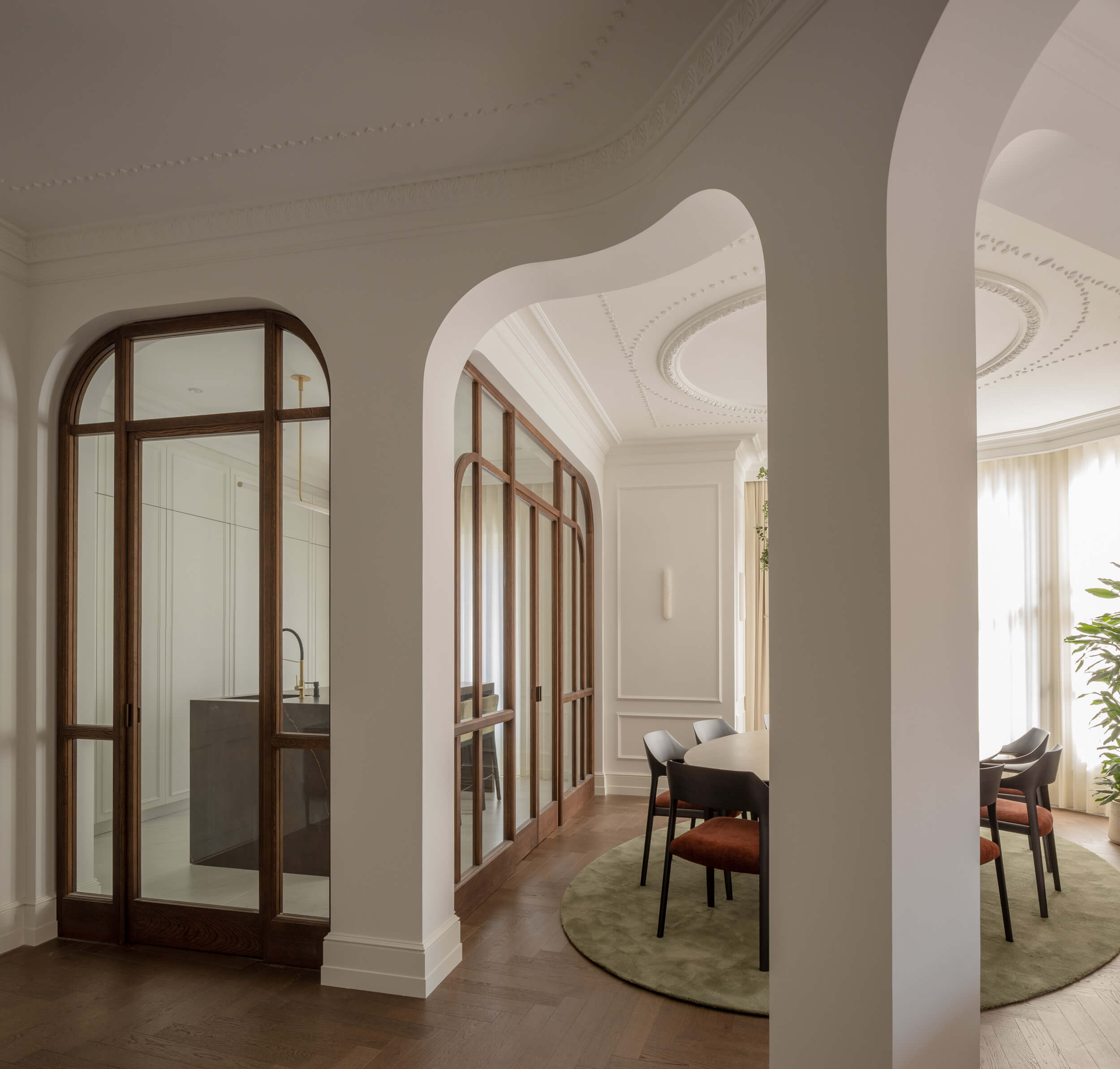 In the heart of Bilbao, we carried out the comprehensive renovation of RA Apartment, a 305 m² residence from the early 20th century located in a listed building. We reinterpreted the classical language with precision to transform it into a home for today. What began as a complex challenge ultimately shaped its essence: a harmonious dialogue between heritage and the new, between the monumental and the habitable, resulting in a residence conceived as an example of classical modernity.