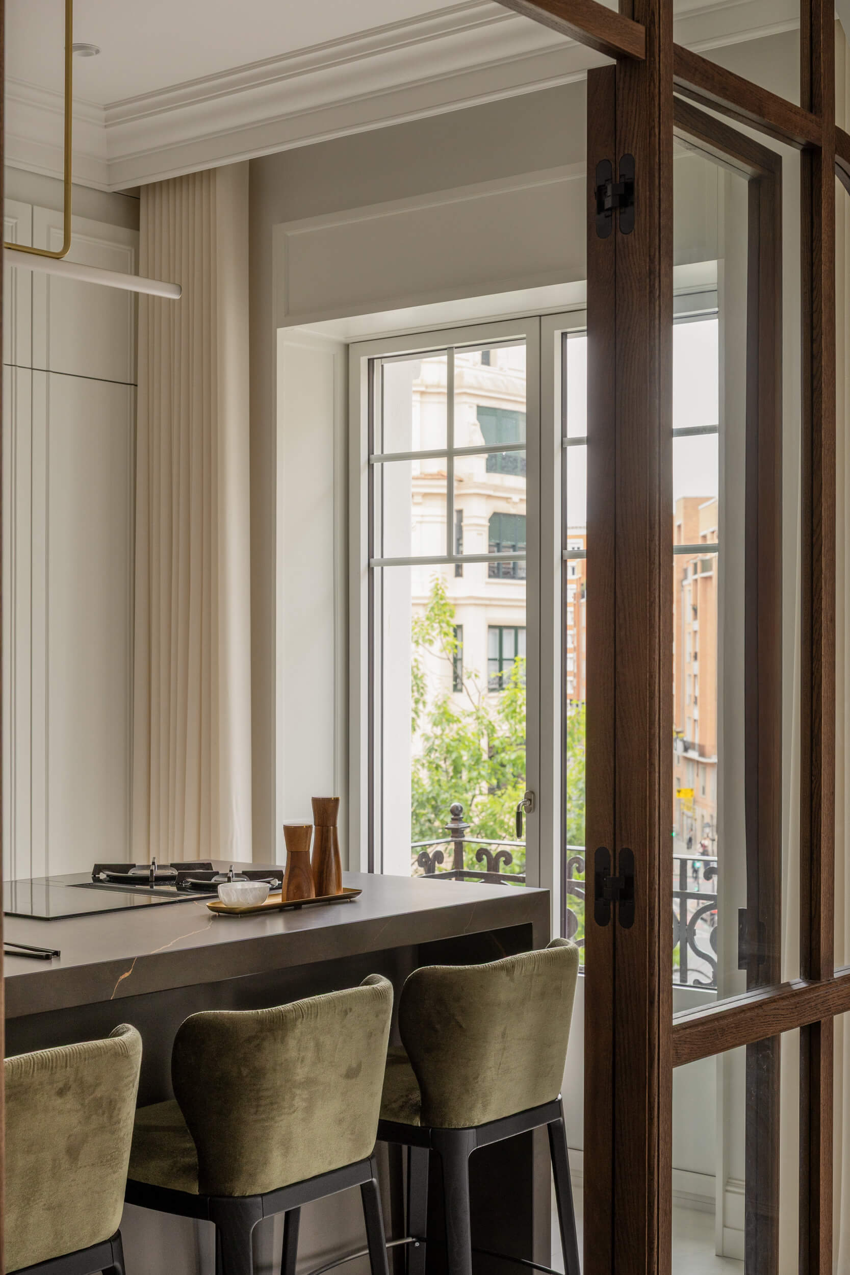 What sets this residence apart is the reinterpretation of classical language, placing it within contemporary Bilbao. Far from relying on ornate gestures, the project embraces a sober, elegant, and balanced aesthetic—almost British in its restraint. The dialogue between historic mouldings and arches, cutting-edge technologies, and refined interior design transcends mere restoration to become a statement of timeless modernity.