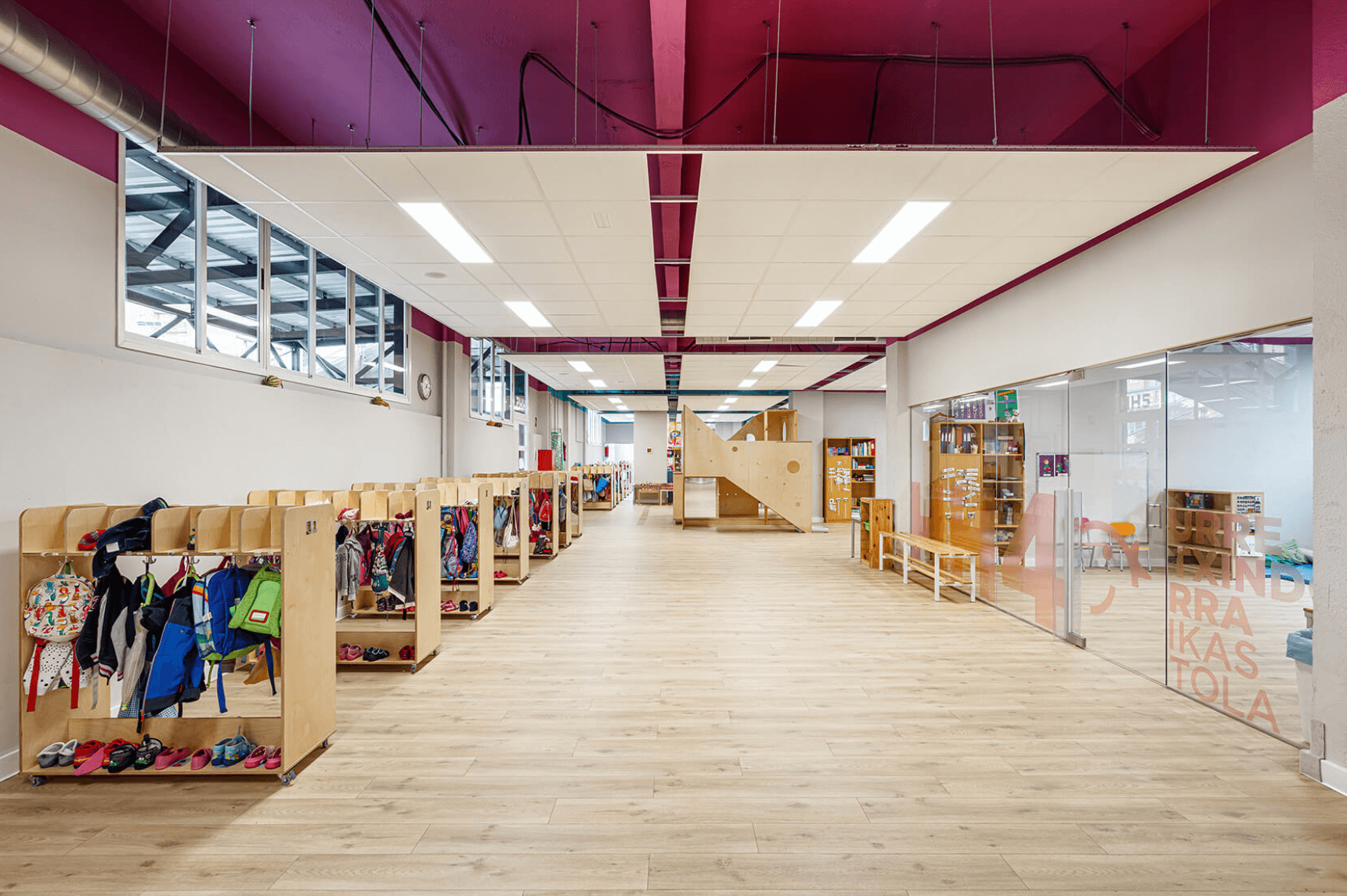 Uno de los principales retos del proyecto fue traducir en una realidad tangible la teoría del nuevo modelo pedagógico, la “Pedagogía de la Confianza”, a través del diseño del espacio y su entorno. Otro desafío importante consistía en aumentar la capacidad del alumnado sin perder superficie de patio.