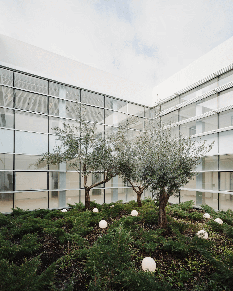En el corazón de nuestro centro de salud se encuentra un firme compromiso con la sostenibilidad. Esta obra arquitectónica se compone de dos elementos distintivos, conectados de forma fluida por una calle que atraviesa el centro de la parcela. Esta elección de diseño deliberada no solo mejora la accesibilidad, sino que también fomenta un sentido de conexión entre los componentes administrativos y asistenciales del complejo. El edificio administrativo, caracterizado por sus líneas limpias y diseño contemporáneo, representa el centro neurálgico del equipamiento. Alberga oficinas, salas de reuniones y espacios colaborativos, y funciona como el núcleo operativo donde las funciones administrativas se integran con la filosofía general del centro. La incorporación de materiales sostenibles y sistemas de alta eficiencia energética refuerza nuestro compromiso con la reducción del impacto ecológico de nuestras operaciones.