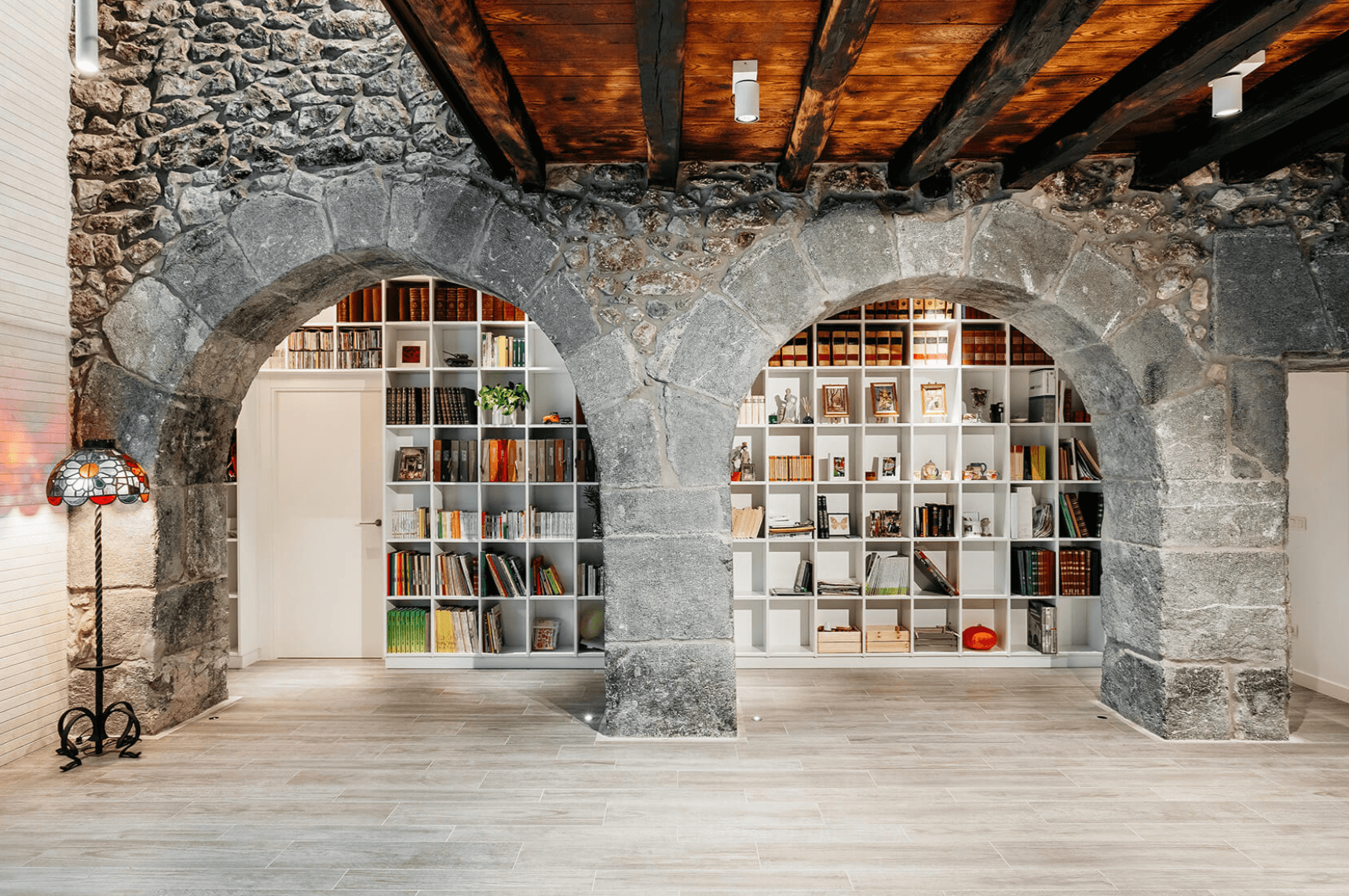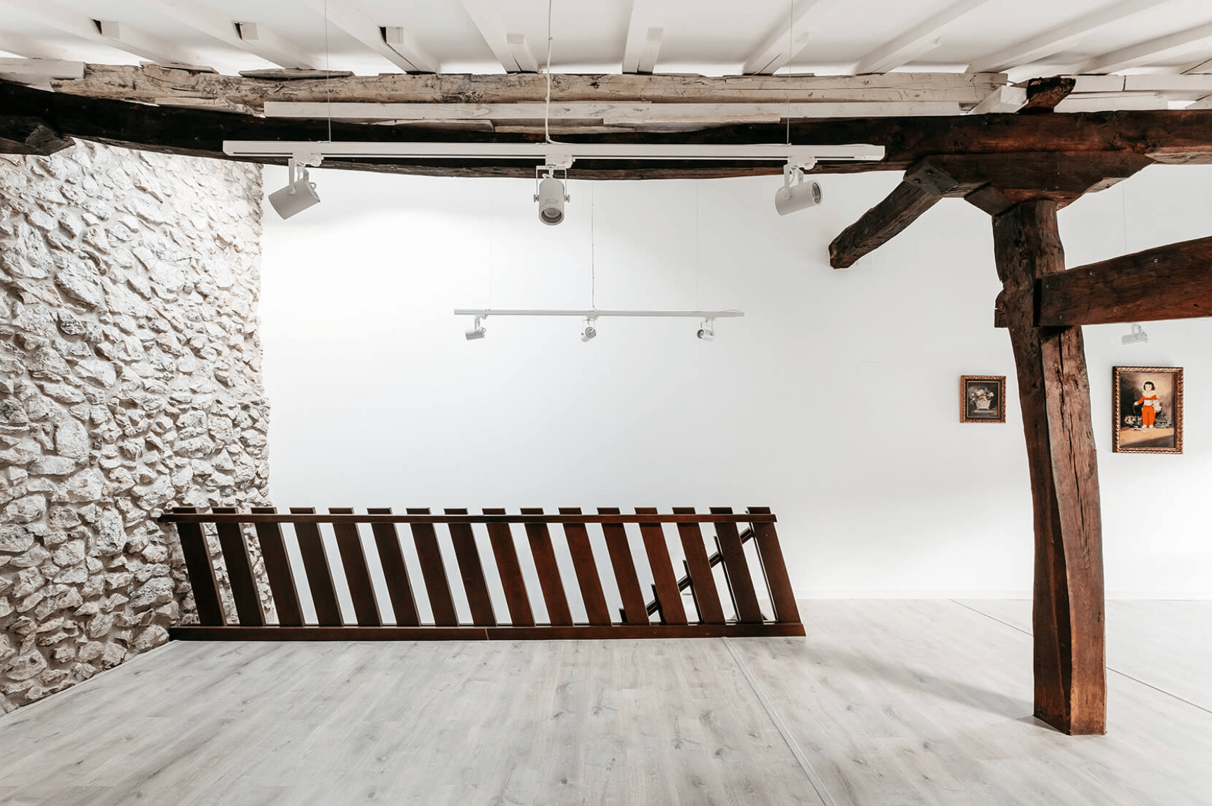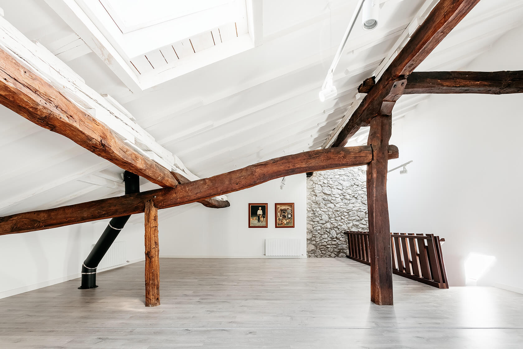 La escalera principal se convierte en el elemento que entrelaza todos los niveles. Comienza en la planta baja, que originalmente albergaba las cuadras y ahora se utiliza como espacios diurnos, y conduce a la segunda planta, destinada todavía a las estancias nocturnas. Finalmente, en la última planta, la antigua cámara de secado ha asumido un nuevo papel como espacio multifuncional.