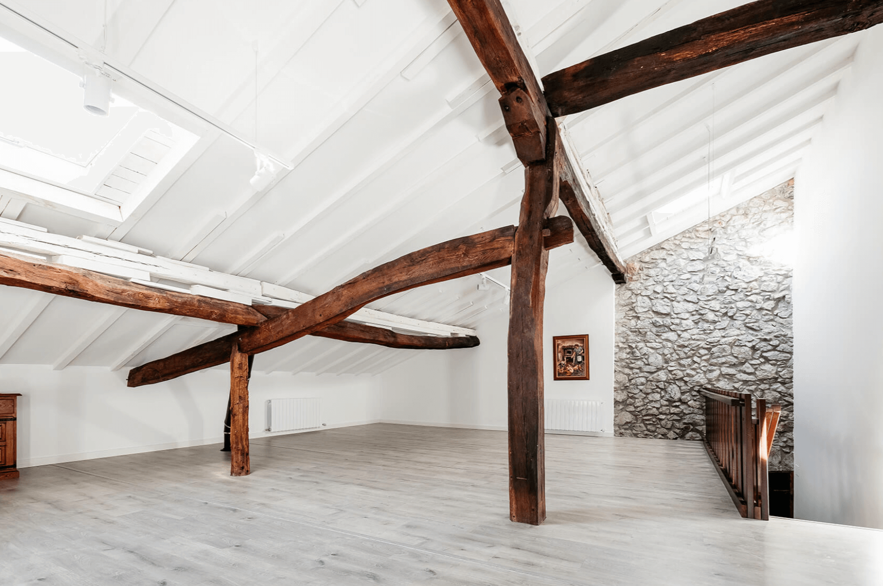 Se utilizaron materiales de tonos claros en la composición cromática de las superficies para contrastar con la estructura original de madera oscura y así ganar luminosidad.