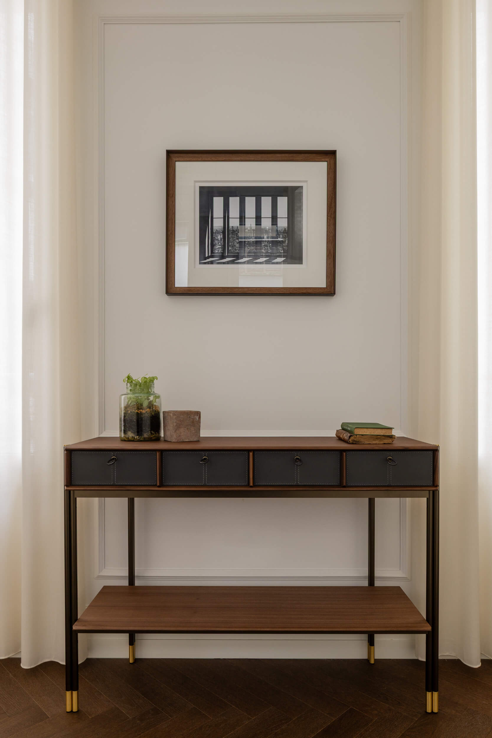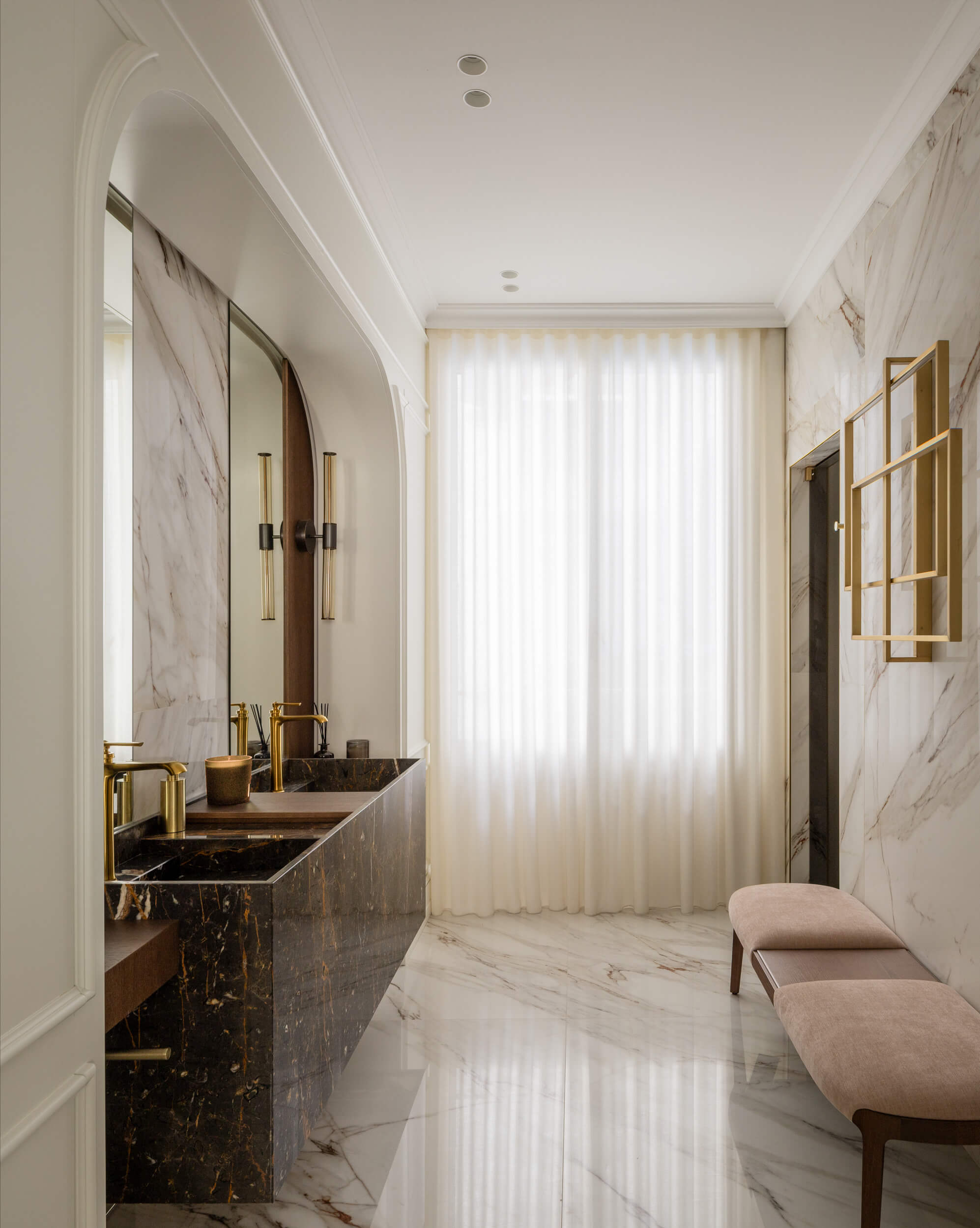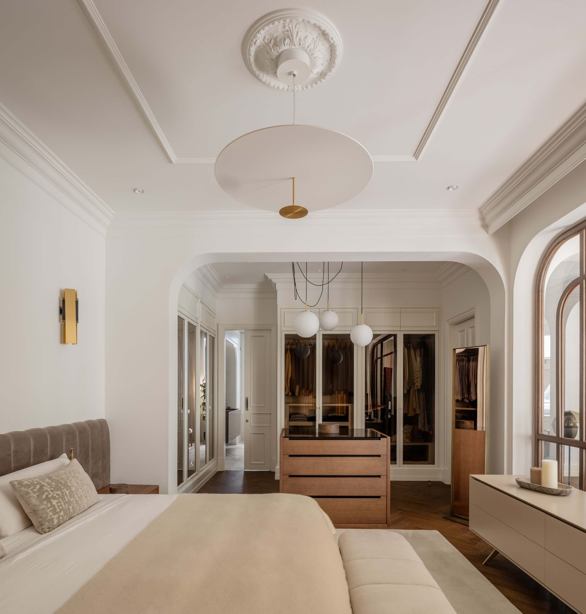 Lo que distingue a esta vivienda es la reinterpretación del lenguaje clásico para situarlo en el Bilbao contemporáneo. Lejos de recurrir a gestos recargados, el proyecto apuesta por una estética sobria, elegante y equilibrada, casi británica en su contención. El diálogo entre molduras y arcos históricos, tecnologías de vanguardia e interiorismo depurado trasciende la mera rehabilitación para convertirse en un auténtico manifiesto de modernidad clásica.