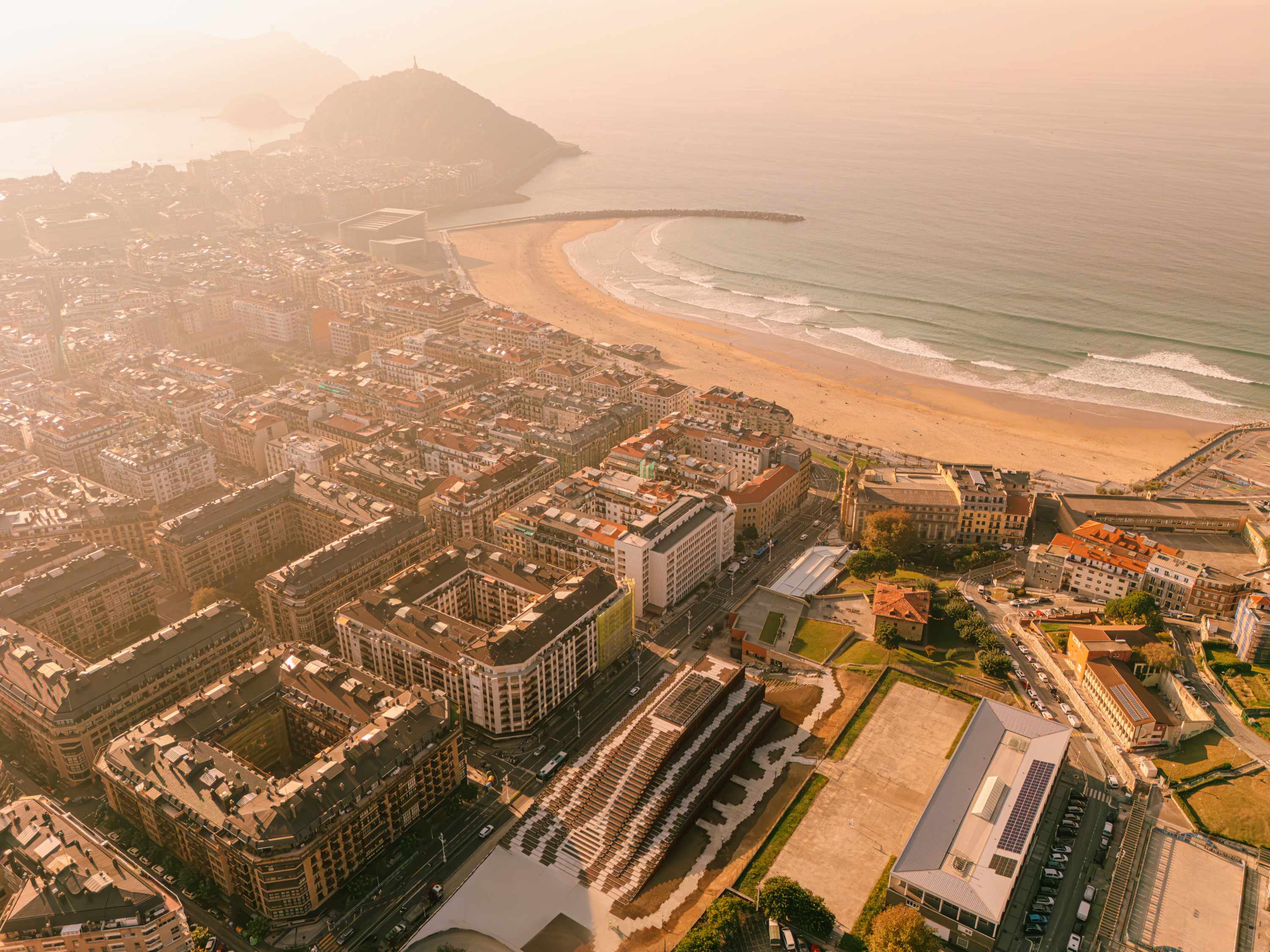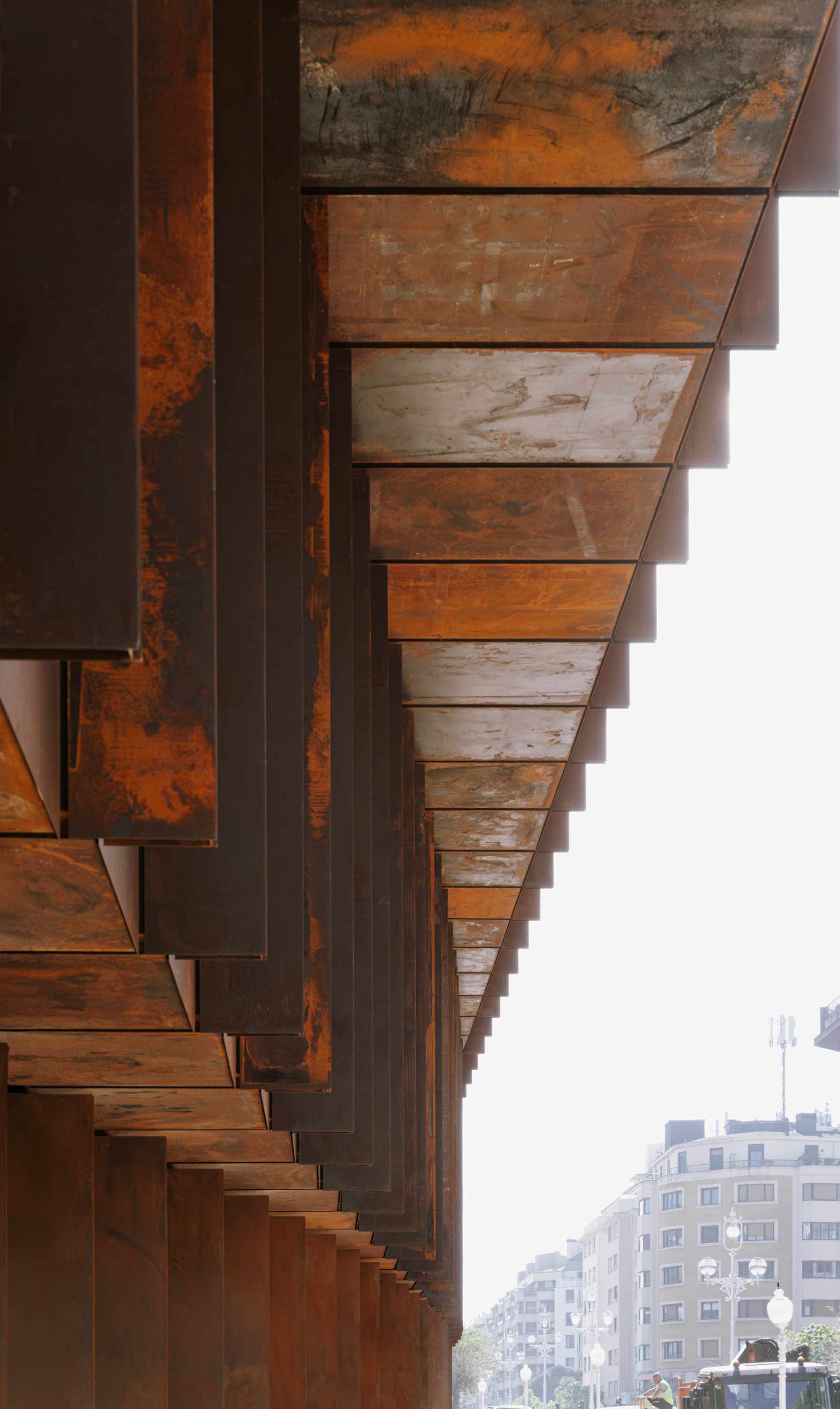Nestled between the sea and the mountains, at the base of Mount Ulia and near Zurriola Beach, GOe takes advantage of the 10-meter slope of the terrain to extend toward the sea through a walkable green roof, creating a building that is both an architectural icon and a public square. The project, titled “Camino de las Olas” (`Path of the Waves´), directly connects to the Camino de Santiago and the Cantabrian Sea.