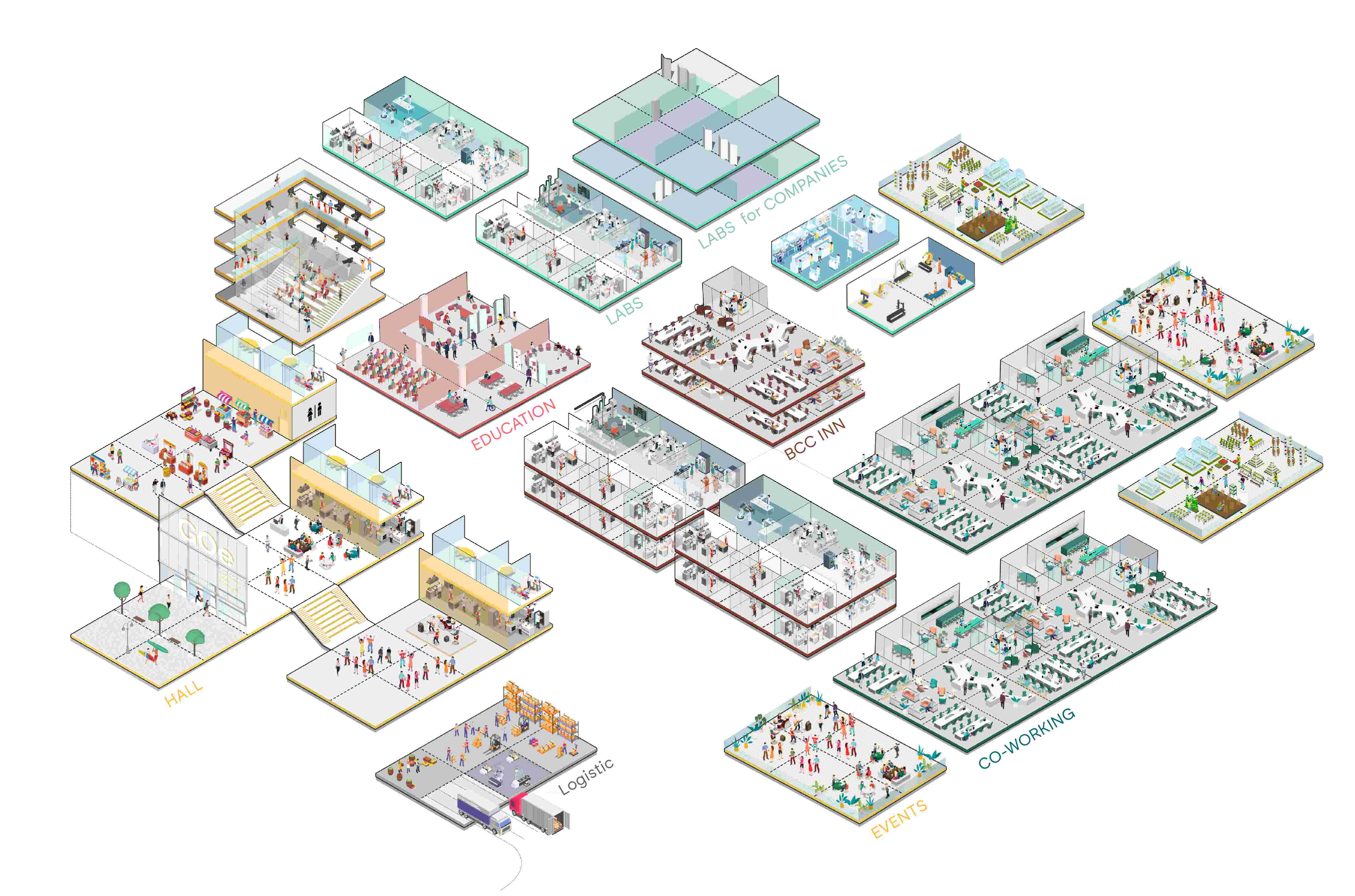 The GOe project began with the design of a bespoke collaborative working process, led by BAT together with the BCC, involving faculty members, researchers, institutional representatives, and industry experts through a design thinking–based methodology. From the earliest stages, BAT led an in-depth research and contextual analysis process that defined strategic guidelines, identified key needs, and translated them into specific spatial solutions. This approach resulted in an infrastructure conceived as an urban ecosystem, where education, research, and innovation coexist within a single space dedicated to the development, advancement, and dissemination of gastronomy. Companies, entrepreneurs, students, researchers, and institutions all form part of GOe’s multidisciplinary identity.